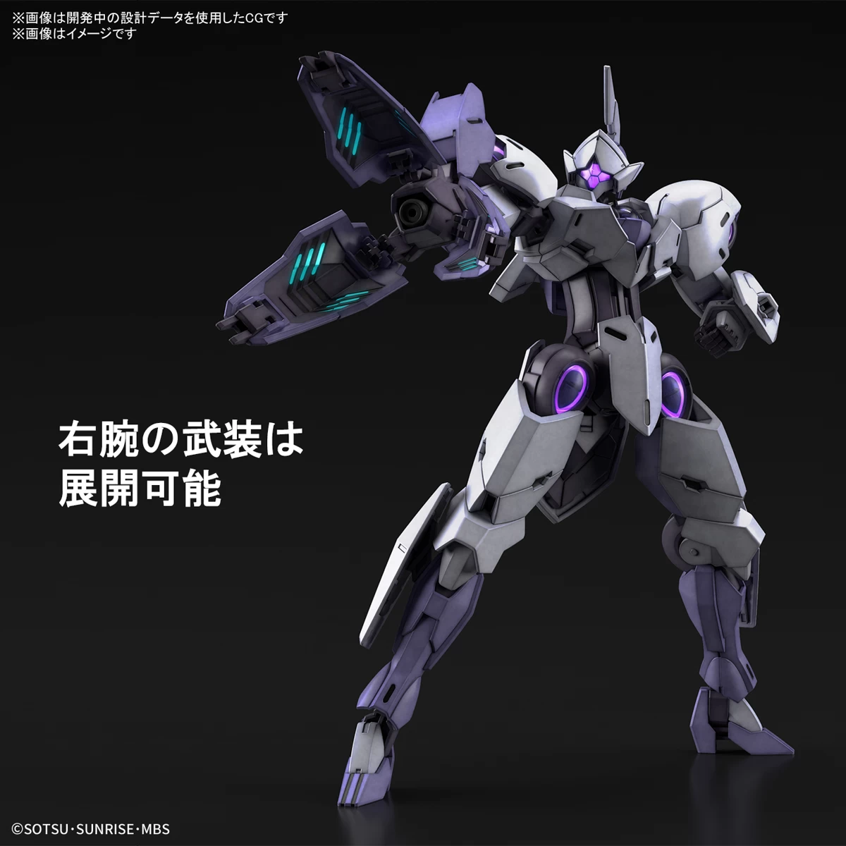 Un grand armement déployable est inclus sur le bras droit, et un petit bouclier sur le bras gauche. La gauche et la droite peuvent être attachées aux parties de poutre moulées transparentes.