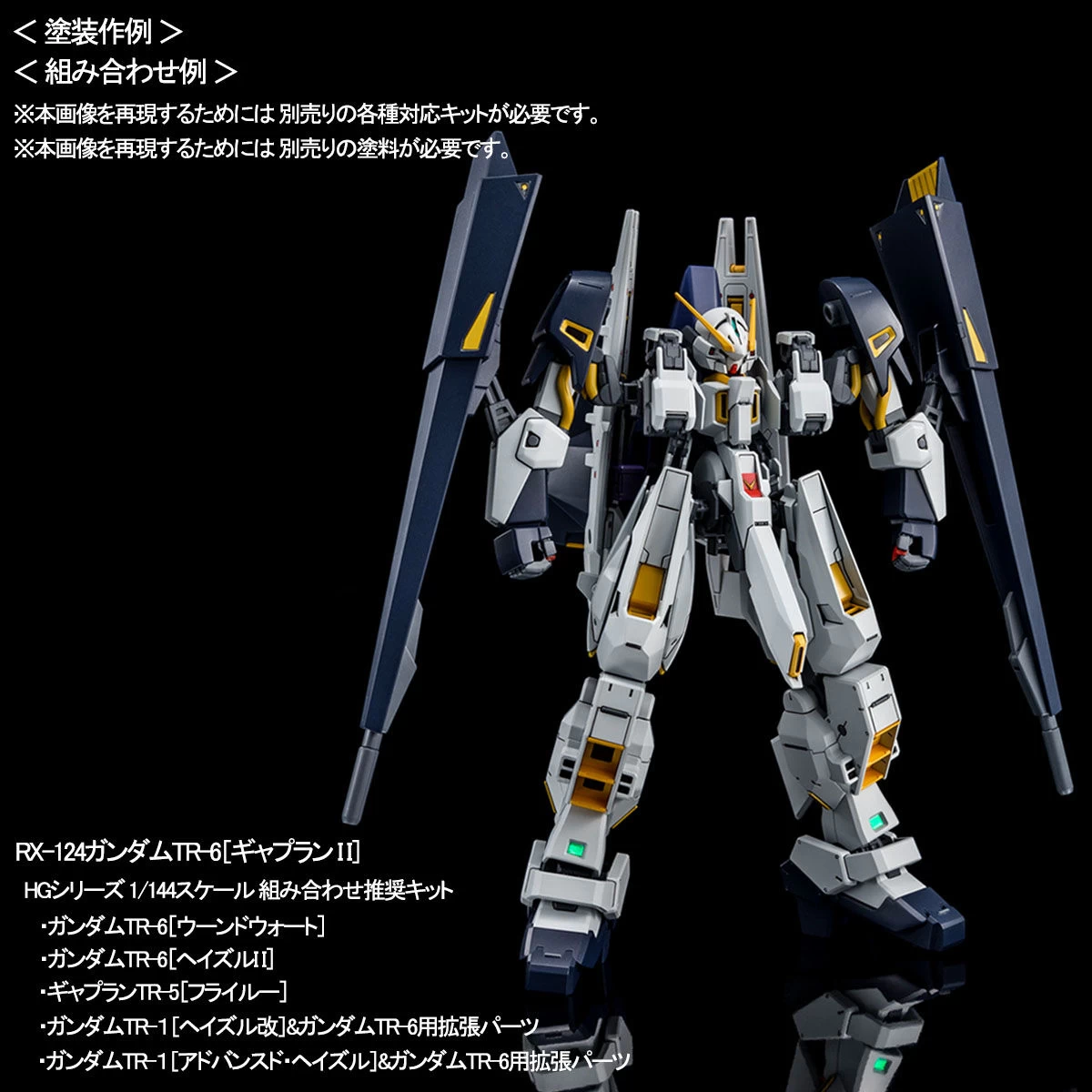 - Pour reproduire “RX-124 Gundam TR-6 [Gaplan II]”, le kit recommandé à l’échelle 1/144 de la série HG vendu séparément est requis.